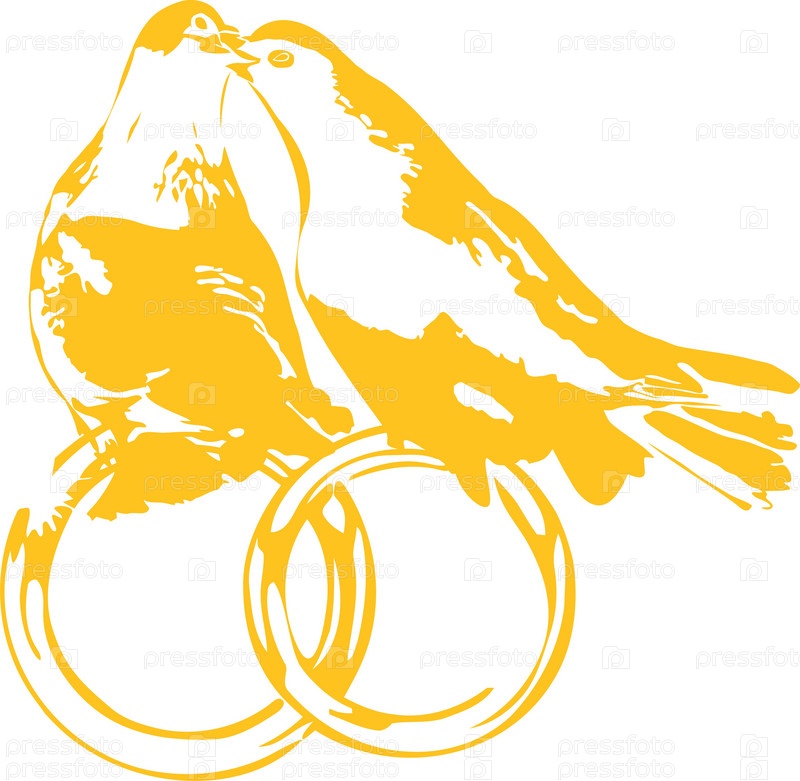 Свадебные голуби, сидящие на обручальных кольцах на белом фоне