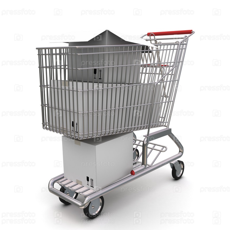 Тележка из супермаркета с коробками
