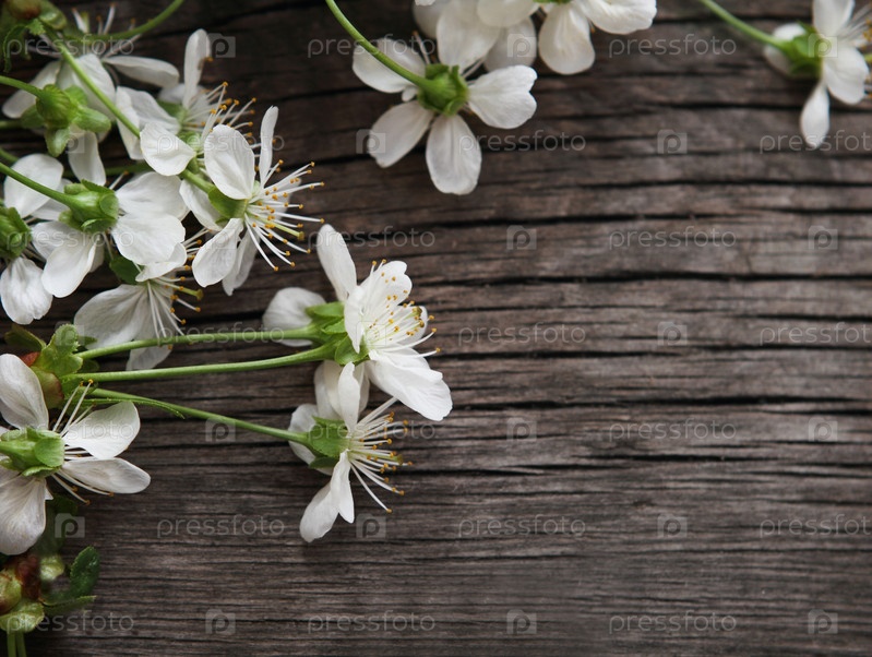 Цветы вишни на деревянном фоне