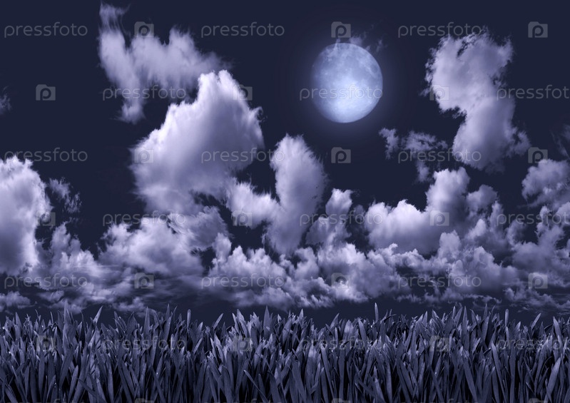 Полная луна над ночной поляной