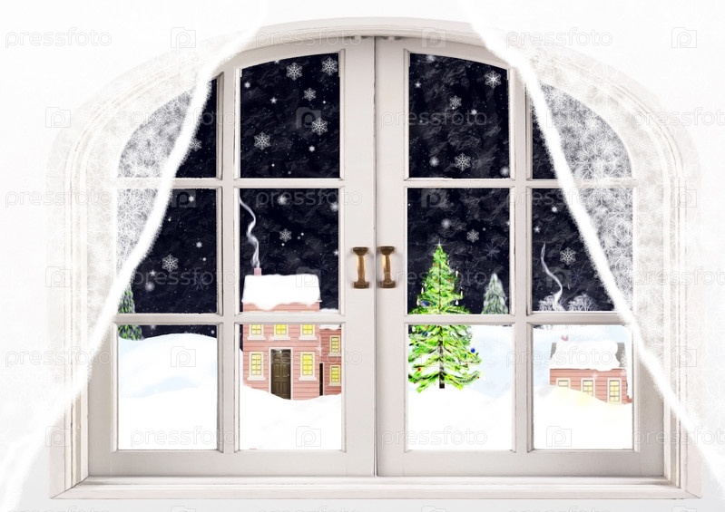 Зимний вечер виден из окна