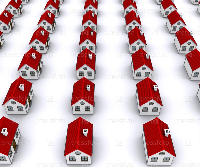 Ряды домов с красными крышами. Вид сверху