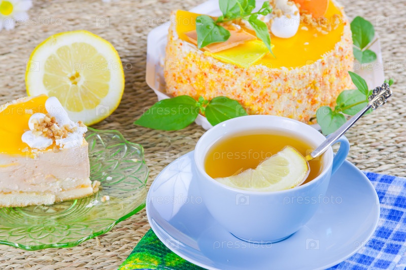 Торт и чай с лимоном