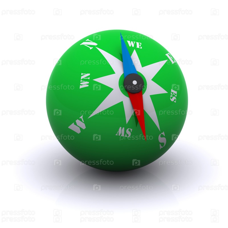 Стилизованный зеленый шар компаса на белом фоне