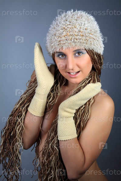 Улыбающаяся девушка в шапке и варежках