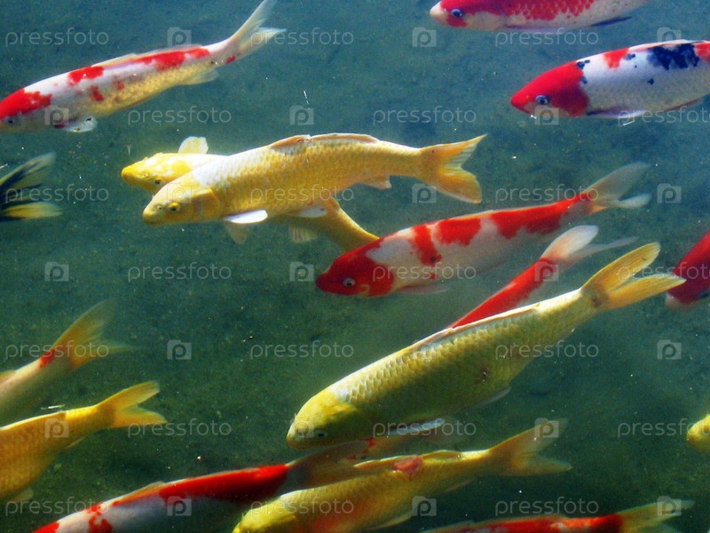 Разноцветные рыбы в пруду