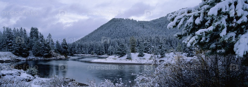 Озеро зимой в горной местности