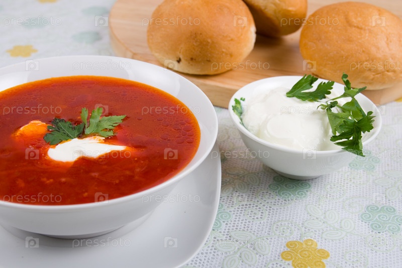Борщ - русский традиционный суп из овощей и мяса со сметаной