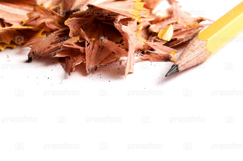 Заточенный карандаш и стружка крупным планом