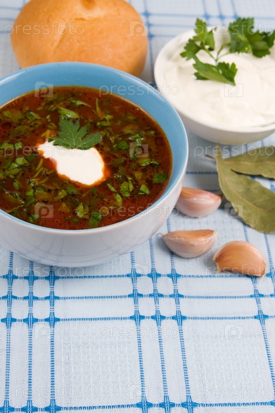 Борщ - русский традиционный суп из овощей и мяса со сметаной