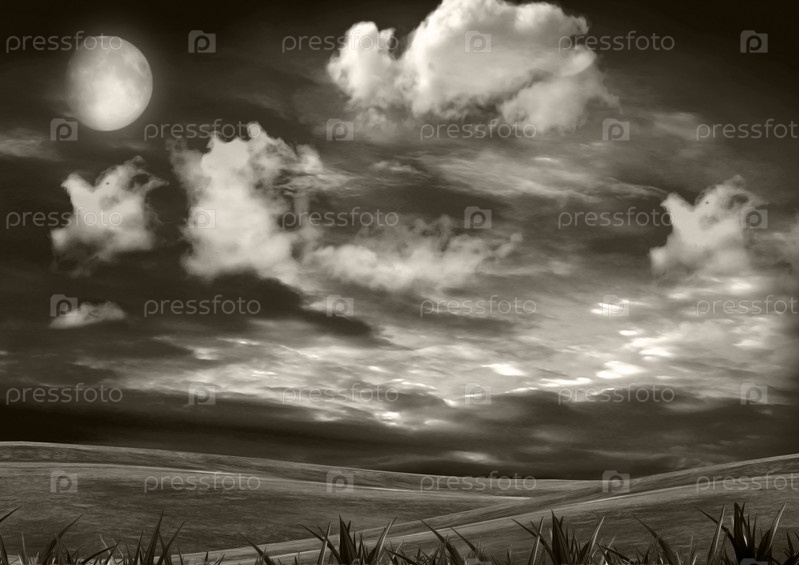 Полная луна над темной поляной