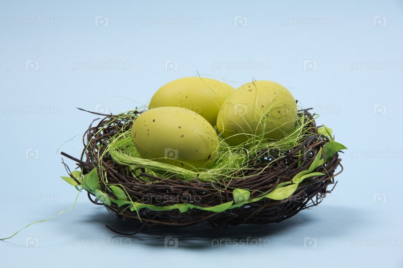 Зеленые яйца в гнезде