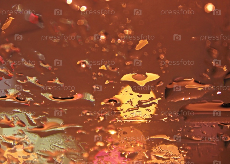 Таящий снег на окне автомобиля на фоне вечерних городских огней
