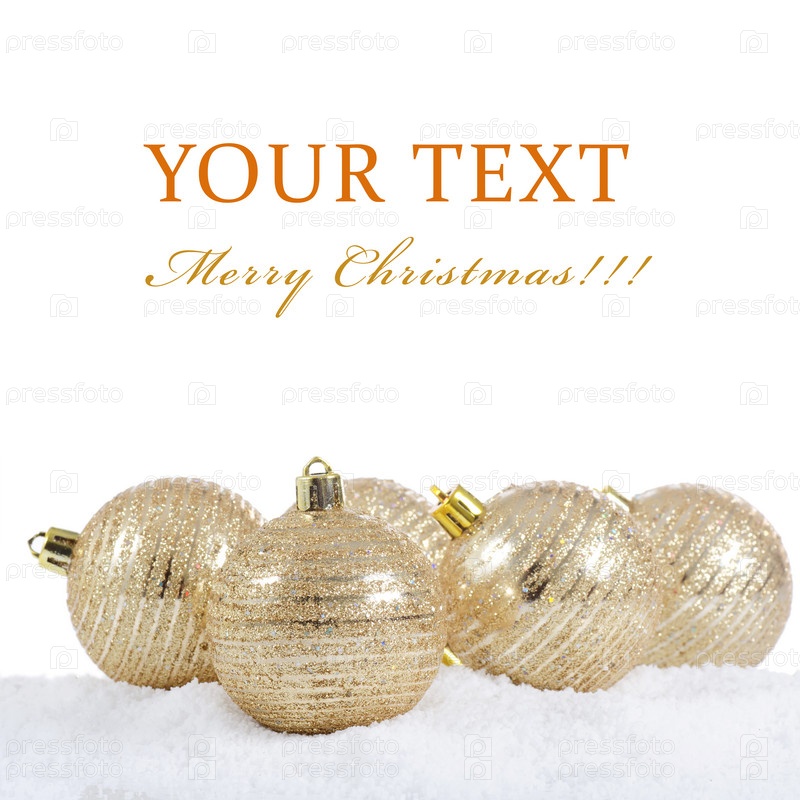 Елочные украшения в снегу, изолированы на белом