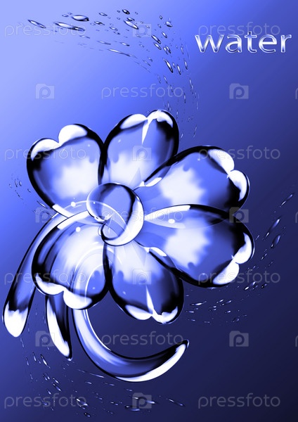 Абстрактный цветок из капель воды на синем фоне