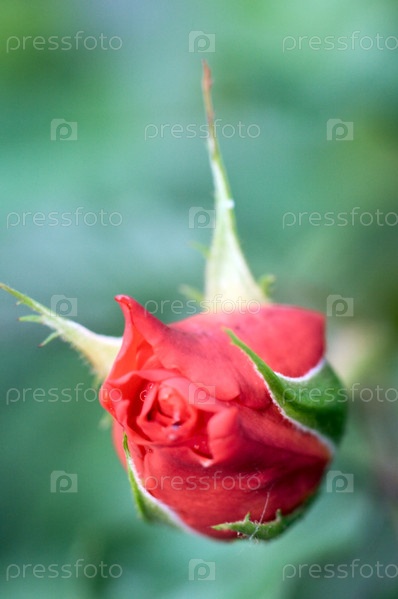 Бутон красной розы крупным планом