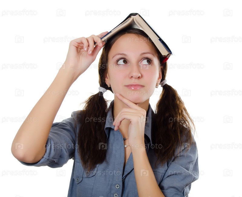 Девушка с книгой, изолирована на белом