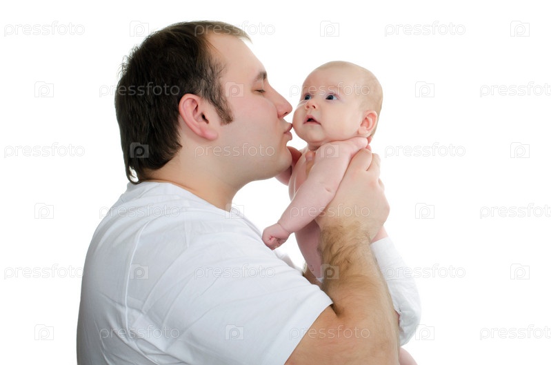 Папа целует маленькую дочь