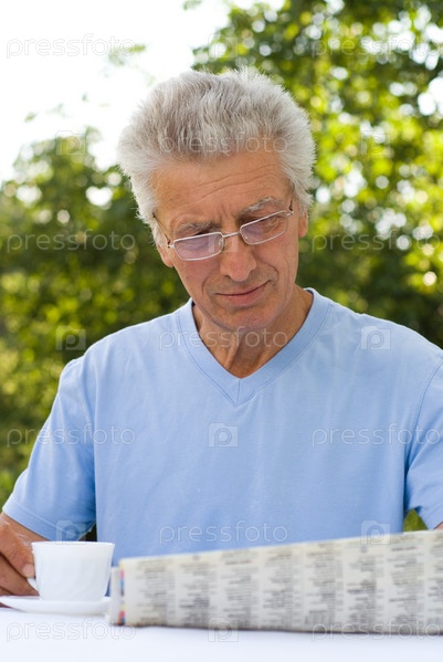 Пожилой мужчина, читающий газету в летнем парке