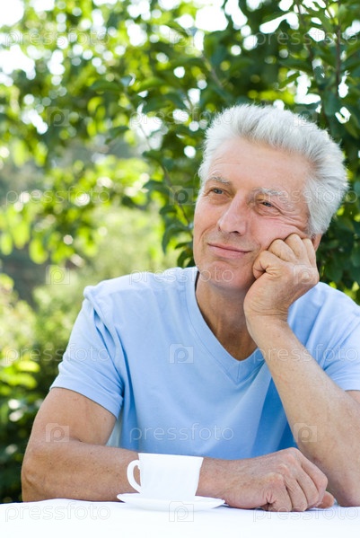 Счастливый пожилой мужчина в летнем парке