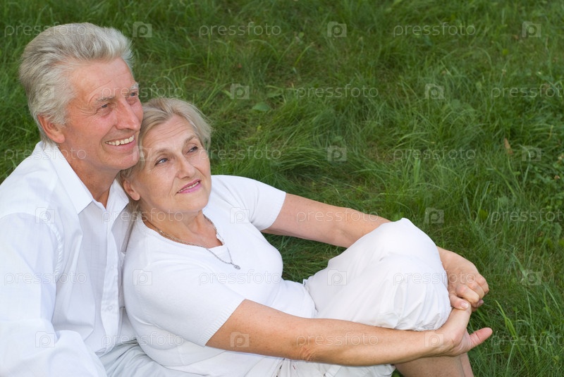 Счастливая пожилая пара в летнем парке