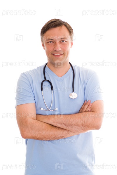 Мужчина врач стоящий на белом фоне