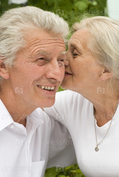 Счастливая пожилая пара в летнем парке