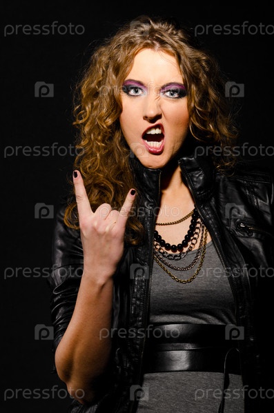 Девушка в стиле рок-н-ролл на черном фоне