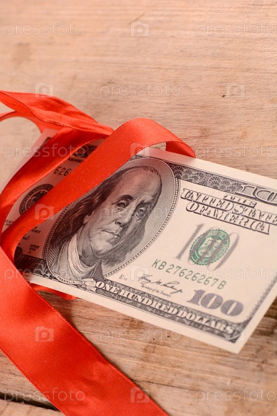 Американские деньги с красной лентой