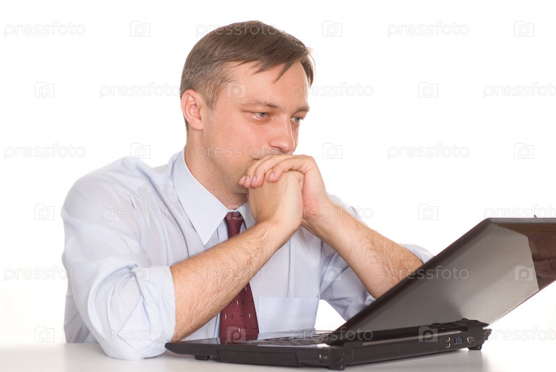 Бизнесмен перед ноутбуком