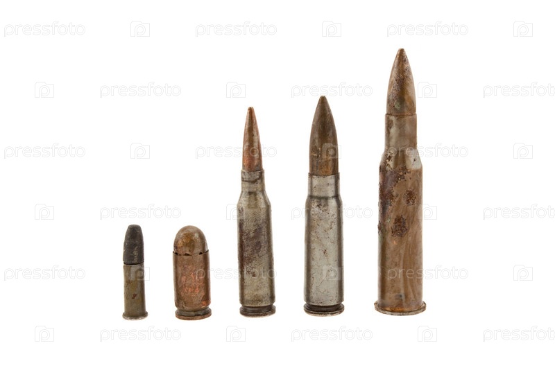 Старые пули на белом фоне