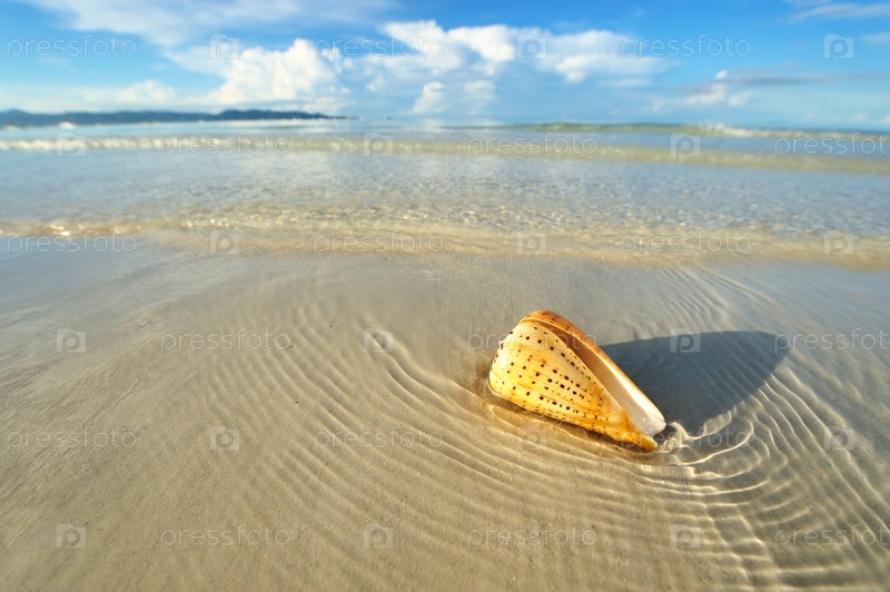 Морская ракушка на красивом пляже