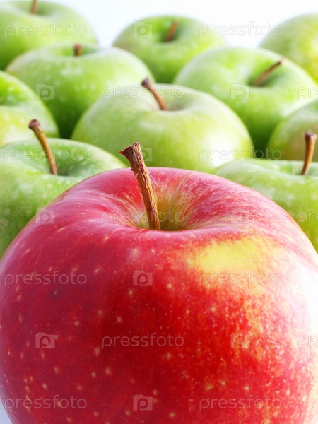 Красное и зеленые яблоки крупным планом