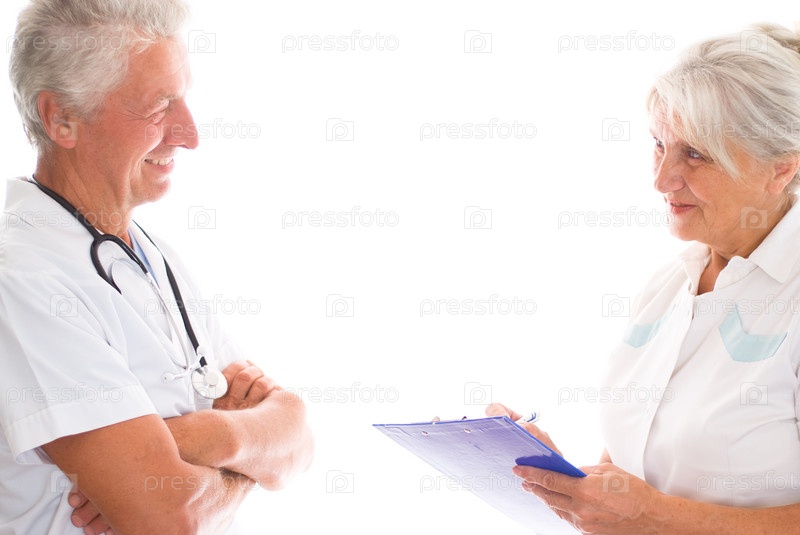 Два улыбающихся врача на белом фоне