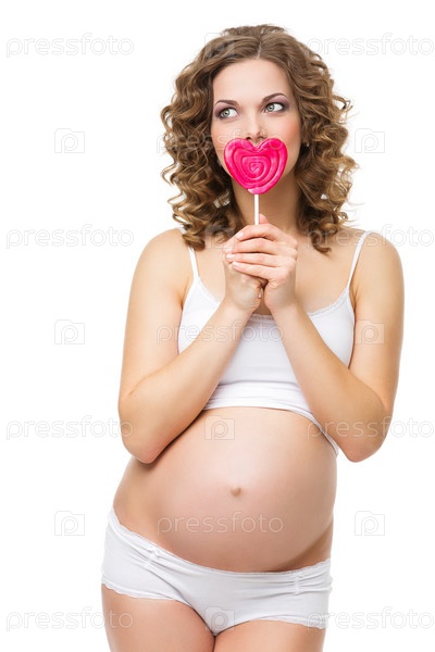 Красивая беременная женщина с леденцом
