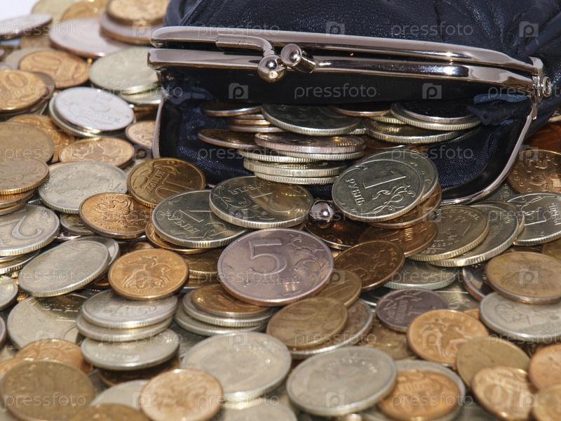 Кошелек на куче монет