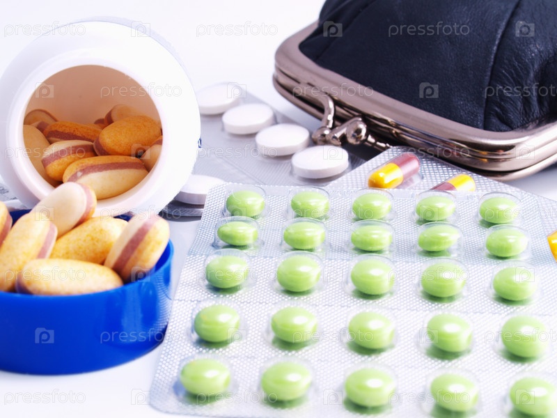 Кошелек и лекарства крупным планом