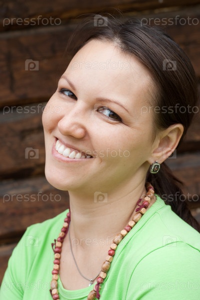 Портрет красивой женщины на фоне деревянной стены