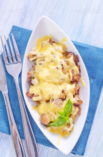 Жаренное мясо с грибами и сыром
