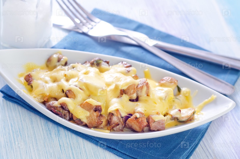 Жаренное мясо с грибами и сыром