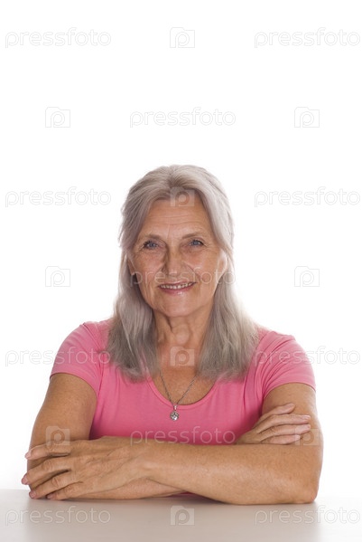 Красивая пожилая женщина на белом фоне
