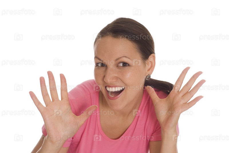 Счастливая молодая женщина на белом фоне
