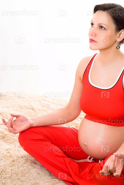 Красивая беременная женщина медитирует