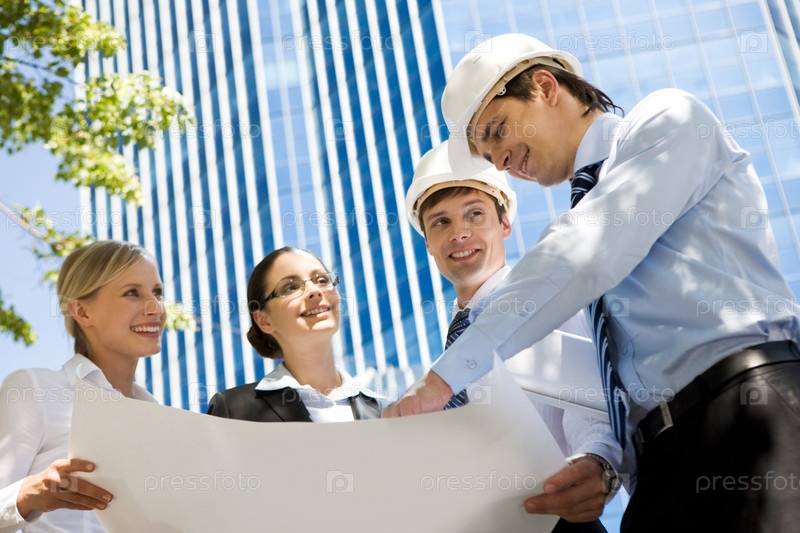 Изображение группы нескольких рабочих, планирующих свою работу снаружи