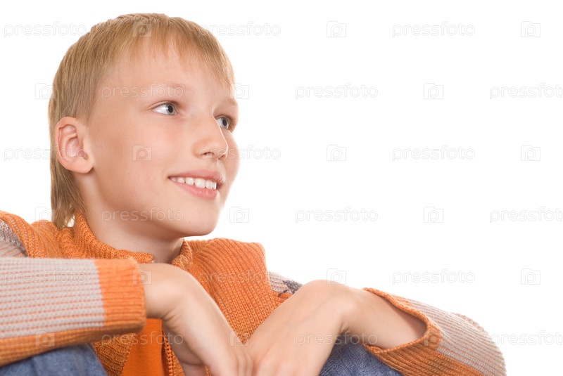 Счастливый мальчик на белом фоне