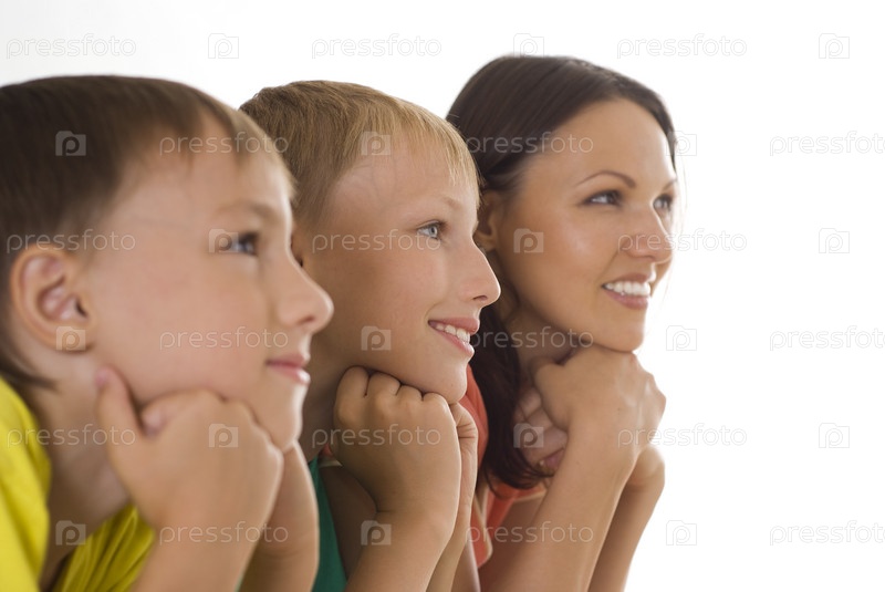 Молодая мама с двумя сыновьями лежат на полу и мечтают