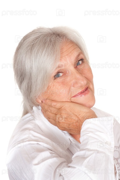 Красивая пожилая женщина на белом фоне