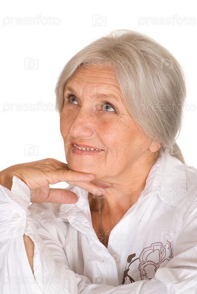 Красивая пожилая женщина на белом фоне