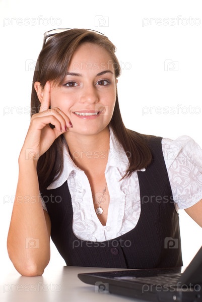 Красивая молодая бизнес-леди на белом фоне