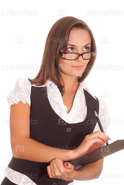 Красивая молодая бизнес-леди на белом фоне